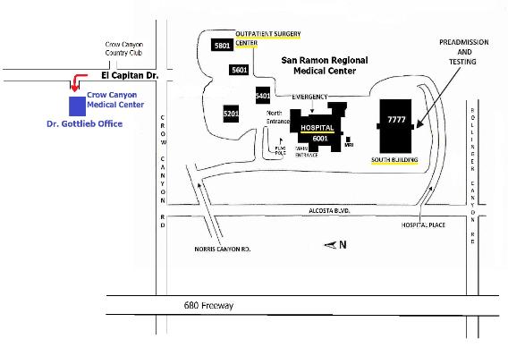 Turn Left into Crow Canyon Medical Center (big tan building).